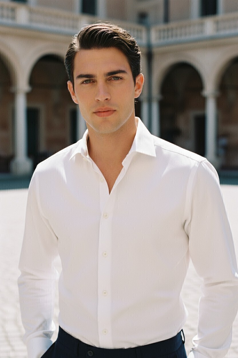Descubrí la elegancia y comodidad de nuestra Camisa blanca de algodón pima con Spandex. Su diseño incluye un cuello italiano que aporta un toque sofisticado, mientras que el hilo celeste le da un detalle sutil y moderno. Ideal para cualquier ocasión, esta camisa combina la suavidad del algodón con la elasticidad del Spandex, garantizando un ajuste perfecto y confortable.