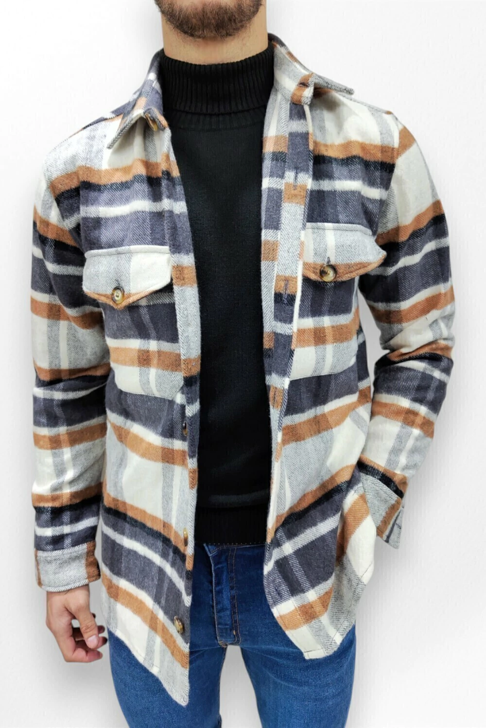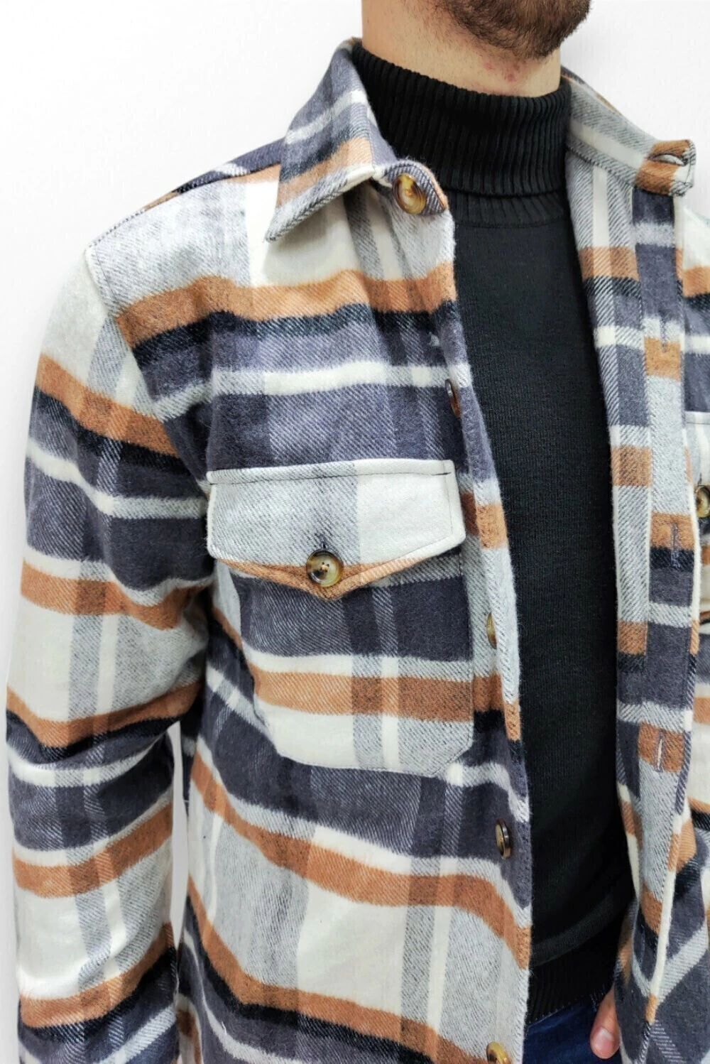 Descubrí el Camisaco de paño en los elegantes cuadros grises.