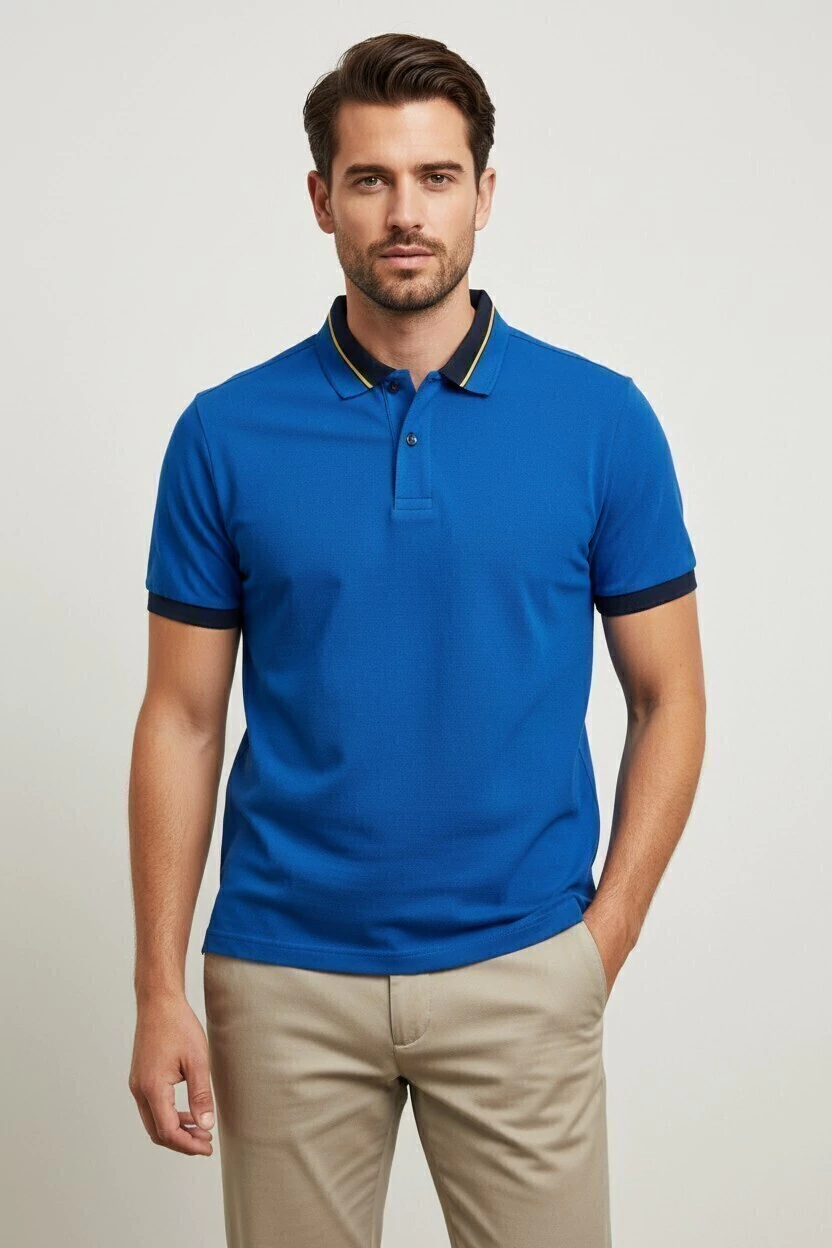 Viví la elegancia y comodidad de nuestra Chomba de Jersey en un atractivo azul Francia.