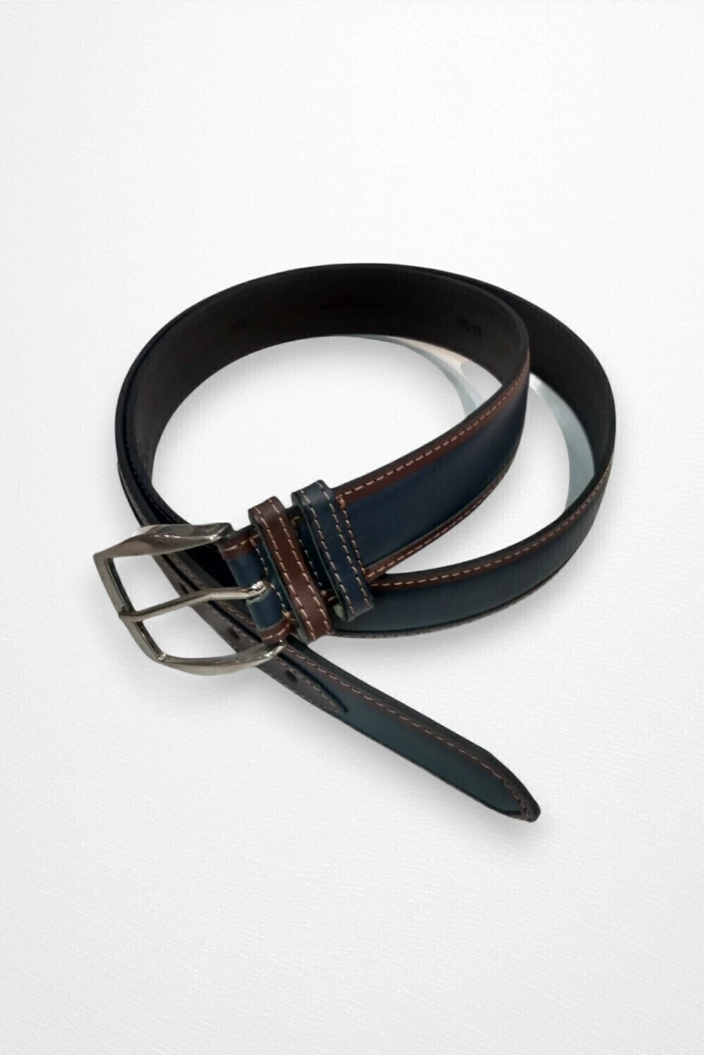 Cinturón realizado en cuero vacuno color Azul c/marrón.