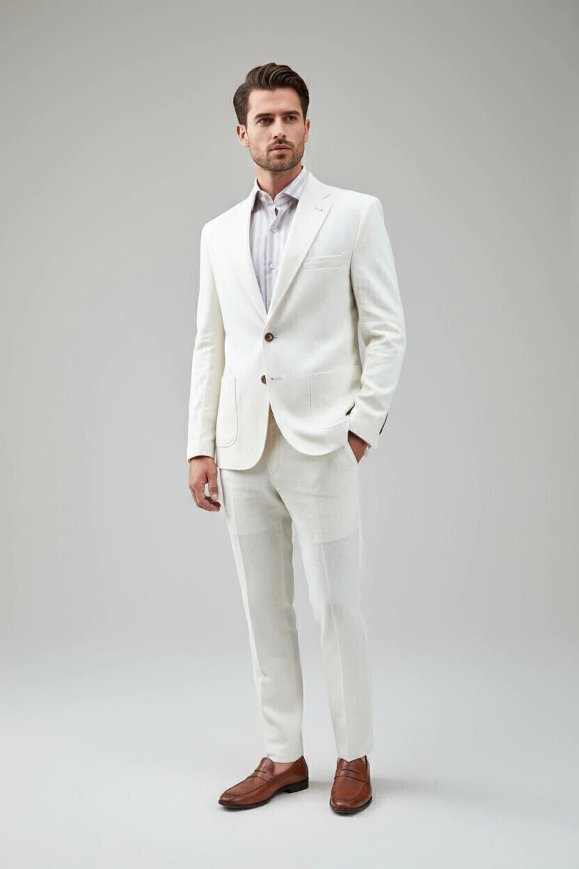 Descubrí la elegancia del Saco de Lino color natural. Con sus dos botones y dos aberturas, este saco combina estilo y comodidad, ideal para el clima cálido.
