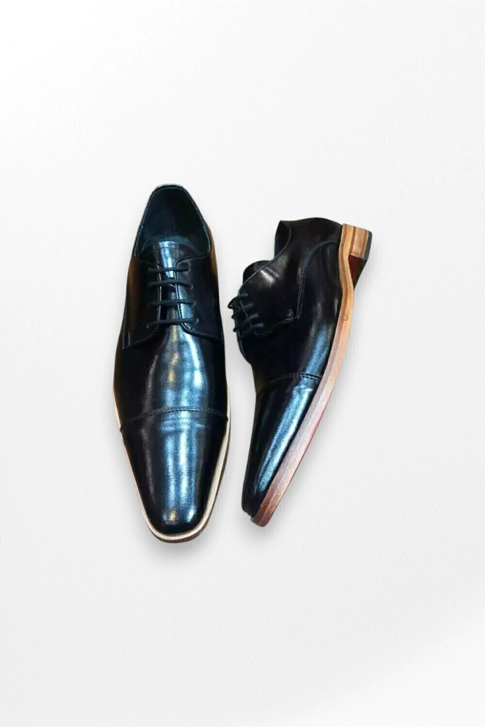 Descubrí la elegancia de los Zapatos de cuero anilina color negro con suela clara.